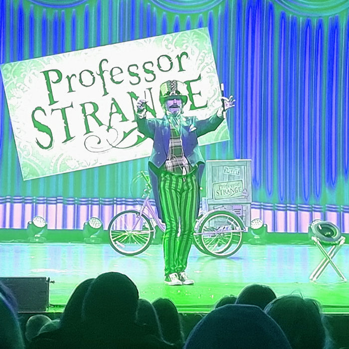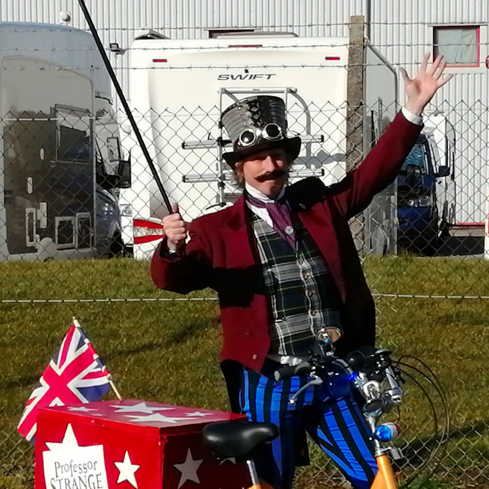 The colourful and quirky Professor Strange is performed by magician and character actor Allin Kempthorne. Allin has been performing as a magician, juggler and actor for 30 years with many television appearances to his name including Britain's Got Talent and long residencies at theme parks, holiday parks, tourist attractions and onboard ships. He was a finalist in the UK Family Entertainer of the Year Award in 2022 and in 2023 was accepted into the world famous Magic Circle.